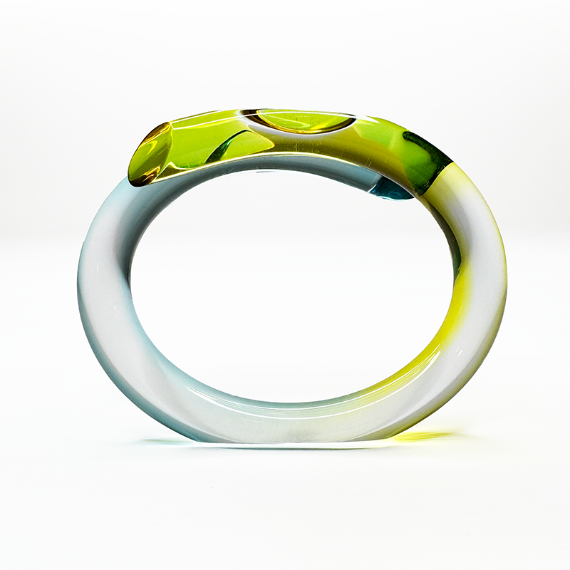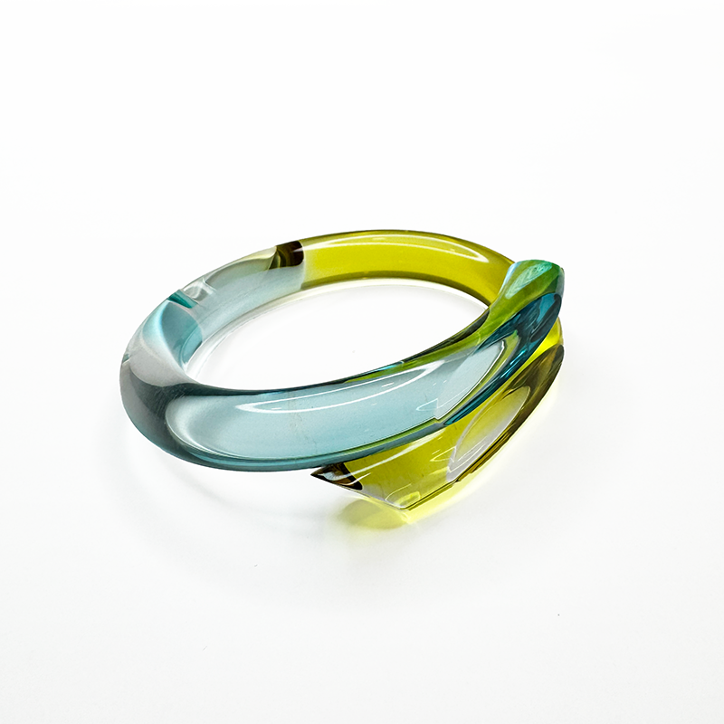 Marlene McKibbin has been making jewellery for over three decades, using many different materials. Her main body of work has been in acrylic and, over the last fifteen years, stainless steel and gold. The acrylic is hand-machined and dyed, with particular attention paid to the finish to allow the angle of refractive light to bounce through; simple structures reflect the unique and tactile qualities of the material. Her work is understated, elegant and effortlessly modern.