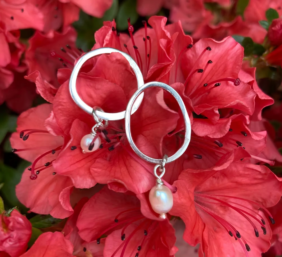 Fine, hand-hammered sterling silver circle with a freshwater pearl.