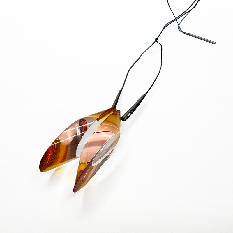 Marlene McKibbin has been making jewellery for over three decades, using many different materials. Her main body of work has been in acrylic and, over the last fifteen years, stainless steel and gold. The acrylic is hand-machined and dyed, with particular attention paid to the finish to allow the angle of refractive light to bounce through; simple structures reflect the unique and tactile qualities of the material. Her work is understated, elegant and effortlessly modern.