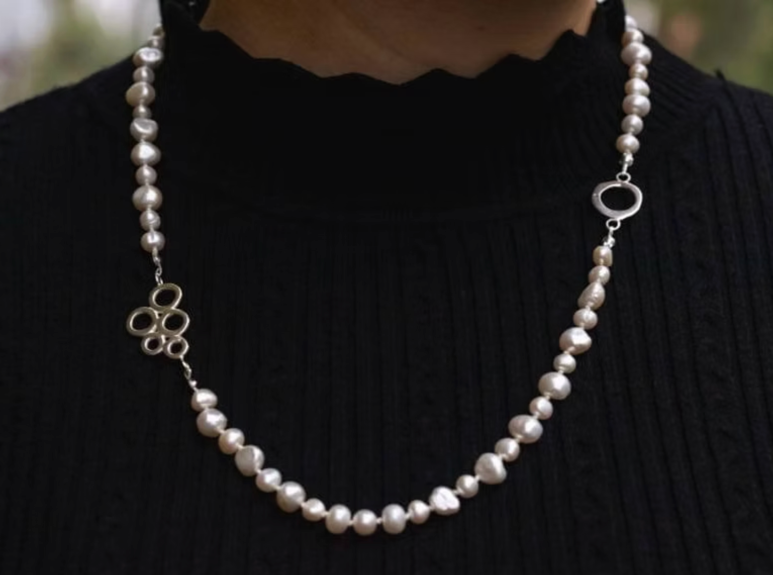 Claire had a sabbatical from teaching and spent time in Kunming, Yunnan’s vibrant capital. She fell in love with red sea bamboo roses and freshwater pearls while exploring South China’s jewellery markets. This experience enriched her life and inspired her artistry, as each piece she creates blends nature’s elegance with her unique vision.