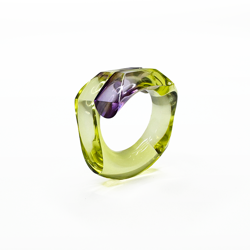 Marlene McKibbin has been making jewellery for over three decades, using many different materials. Her main body of work has been in acrylic and, over the last fifteen years, stainless steel and gold. The acrylic is hand-machined and dyed, with particular attention paid to the finish to allow the angle of refractive light to bounce through; simple structures reflect the unique and tactile qualities of the material. Her work is understated, elegant and effortlessly modern.