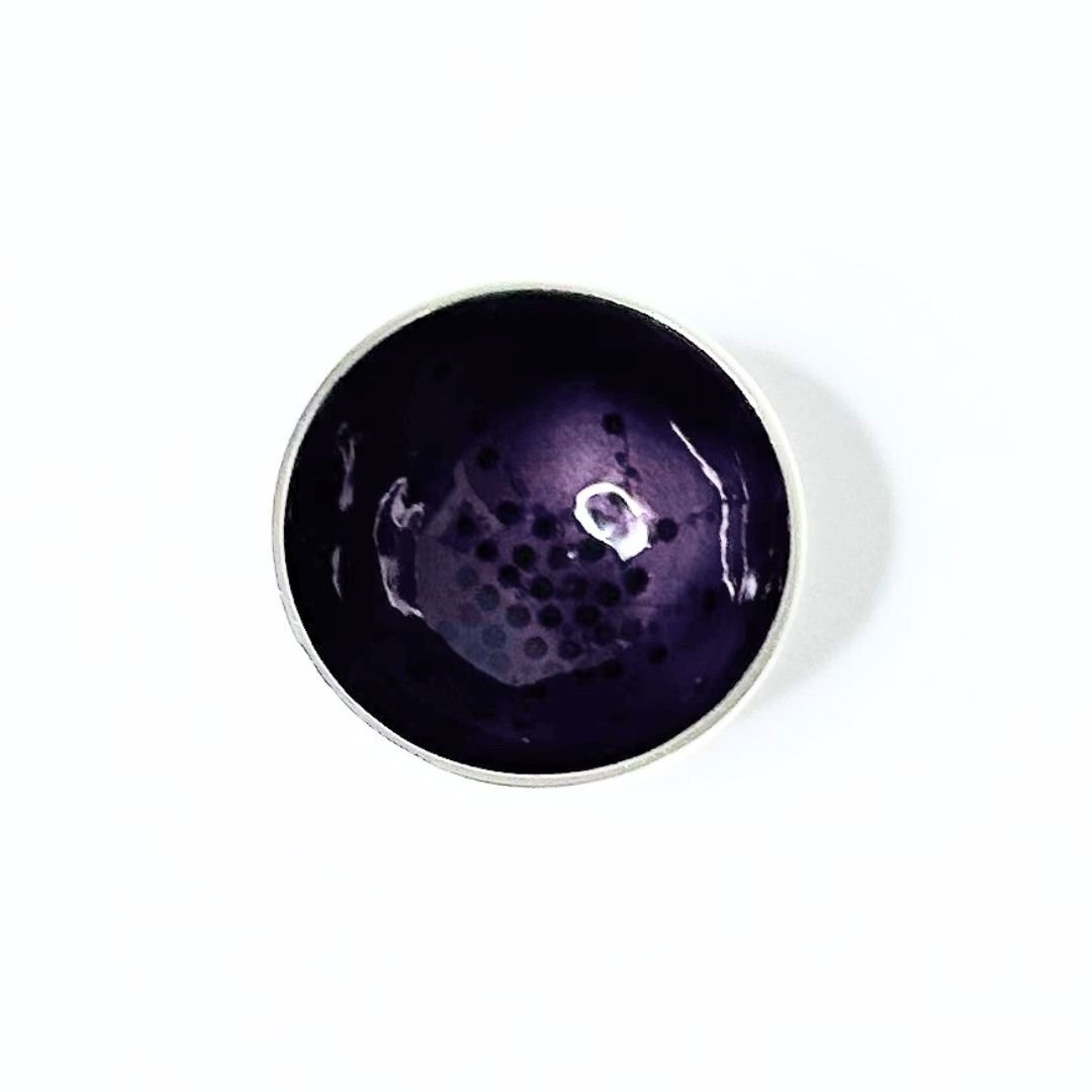 Silver bowl with purple vitreous enamel by Cara Murphy.