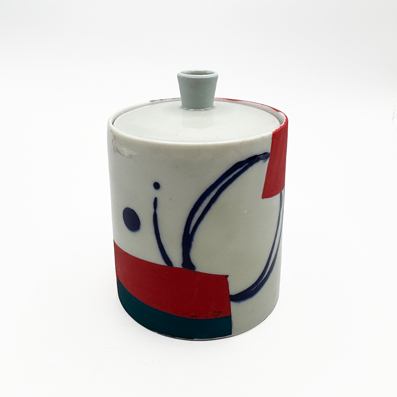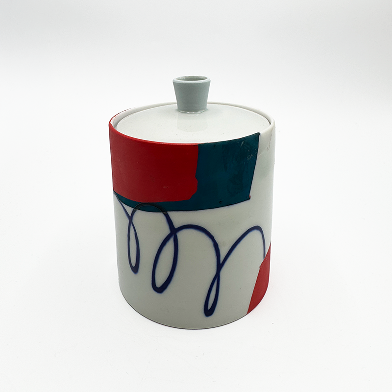 Small Lidded Jar (red and blue) by Adam Frew—Handmade in Co. Derry, Northern Ireland.