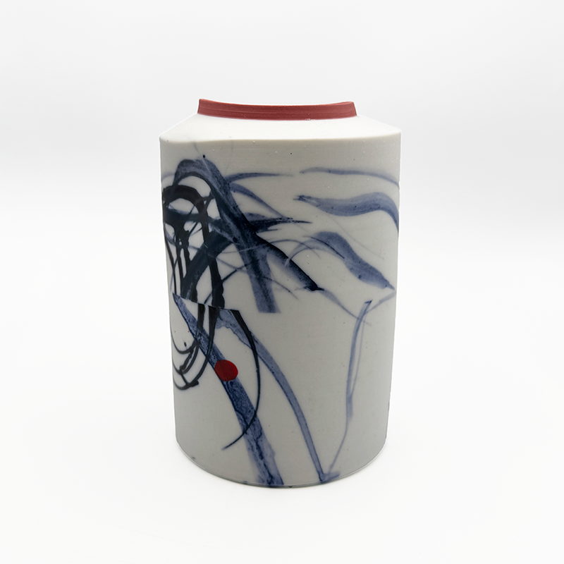 ‘I make clean, simple forms on the potters wheel that subtly show the makers hand in order to imbue a sense of life in the work.  I enjoy the spontaneity of throwing, the speed of production and I seek to reflect this energy in my mark making.   My marks are continually evolving, I am interested in contrasts; sharp lines, crayon scribbles, brush marks, sponged back sections.  It is this ongoing investigation that invigorates my making.’