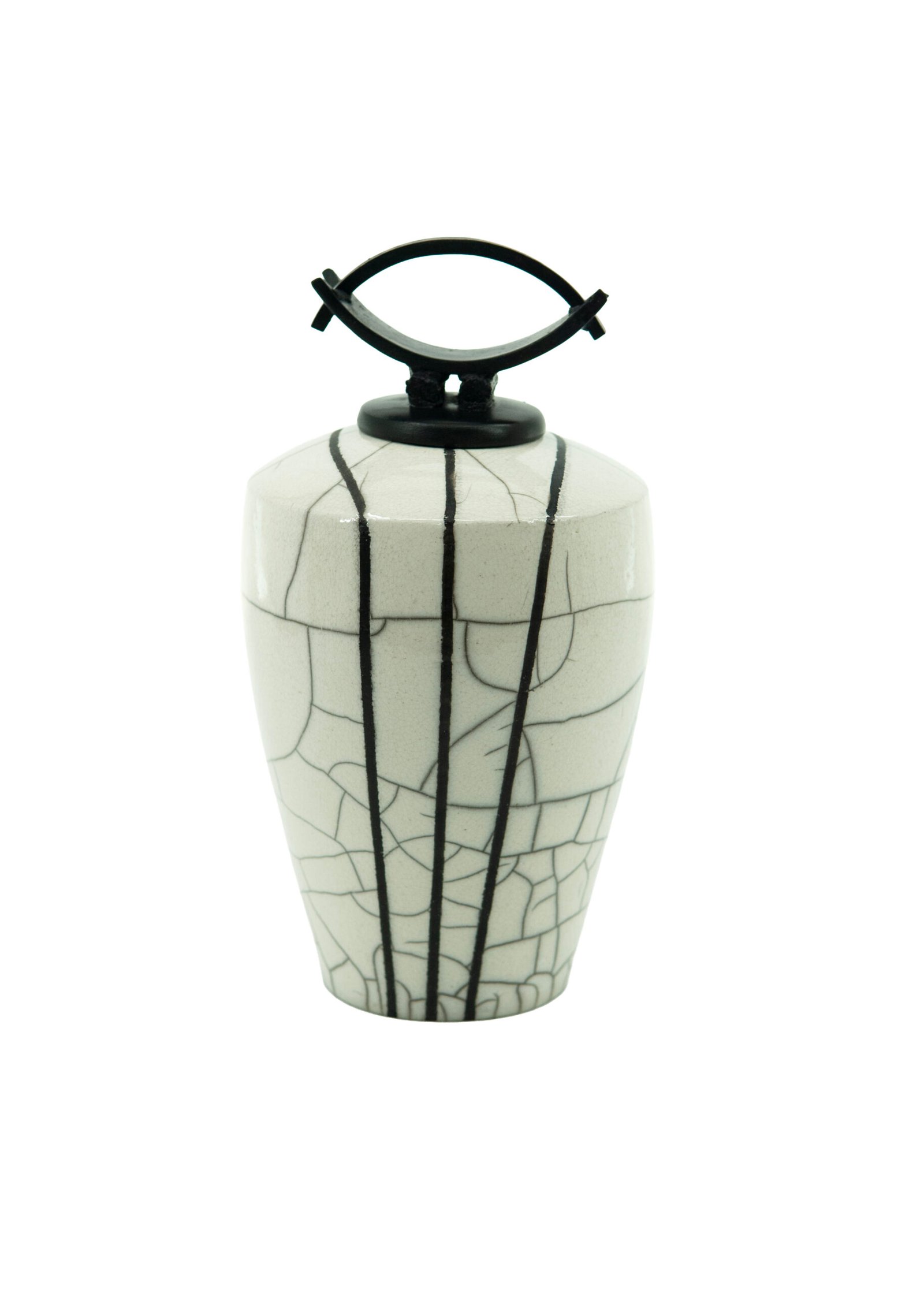 Raku Fired with White crackle Glaze